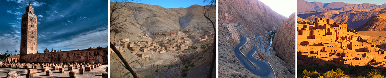 Departing from Marrakesh early in the morning, driving through the Tichka Col (mountain road) where we will break to appreciate the magnificent panoramic view. The lunch will be at Aït Ben Haddou, it’s one of the oldest Kasbah villages. This beautiful area is an official UNESCO World Heritage Site. We arrive in Ouarzazate in  mid afternoon. Here we can visit the Atlas film studio (optional, entry at your own expense). We will then visit the Taourit Kasbah. In the evening, after we settle in at the hotel, we will enjoy an traditional meal in an authentic Moroccan restaurant.